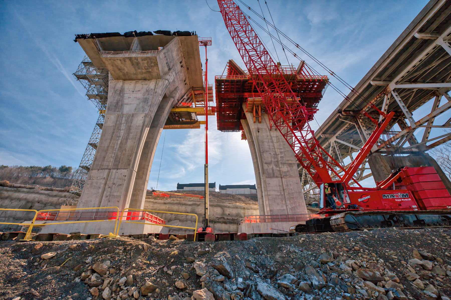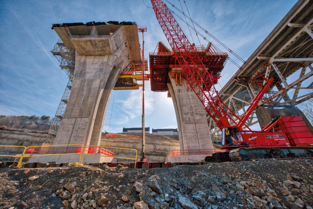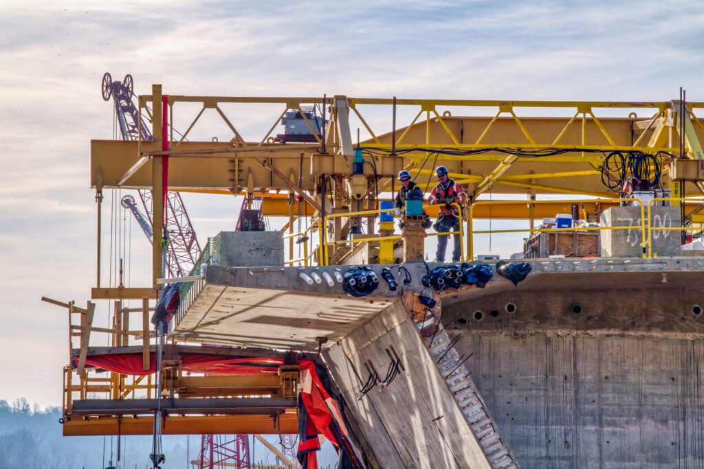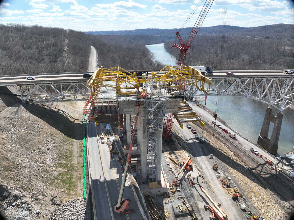 Pier tables are currently under construction on the eastbound bridge and have been completed on the westbound side. Each bridge is a five-span, cast-in-place, segmental bridge that is 1,645 feet long and 200 feet high. The westbound bridge structure is anticipated to open in mid-2026 with the entire project finished in 2027.