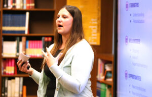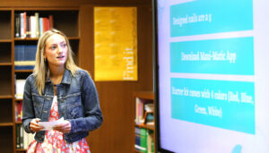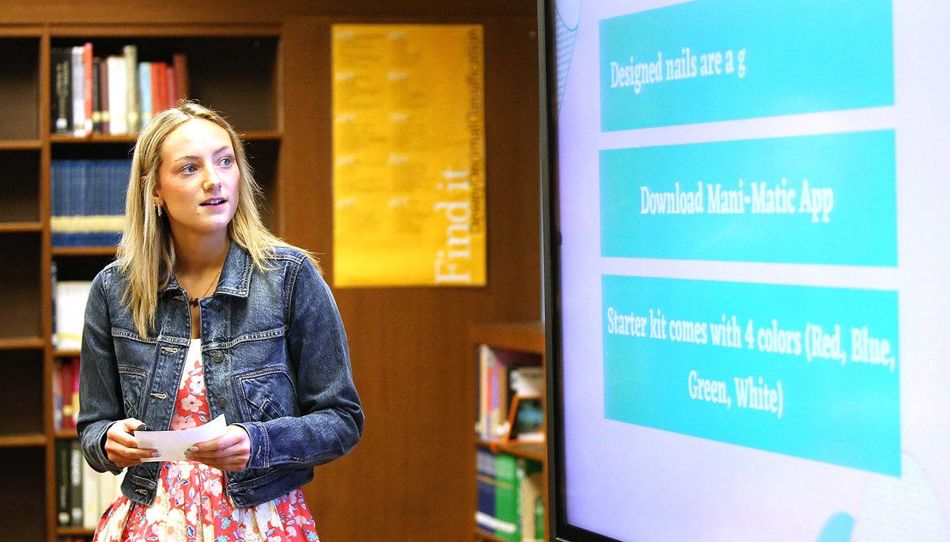 Students presented business plans May 5 in Lincoln’s library.