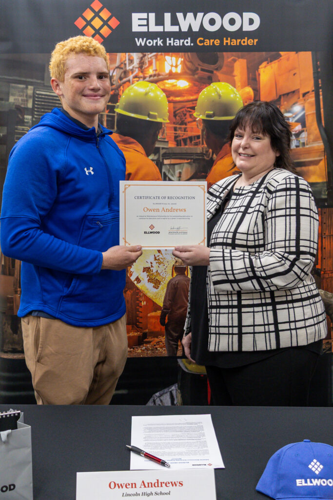 ELLWOOD is proud to recognize Lincoln High School senior Owen Andrews as the latest recipient of the ELLWOOD Industrial Maintenance Scholarship. Owen was awarded $10,000 to support his continued education in Electro-Mechanical Technology at the New Castle School of Trades.