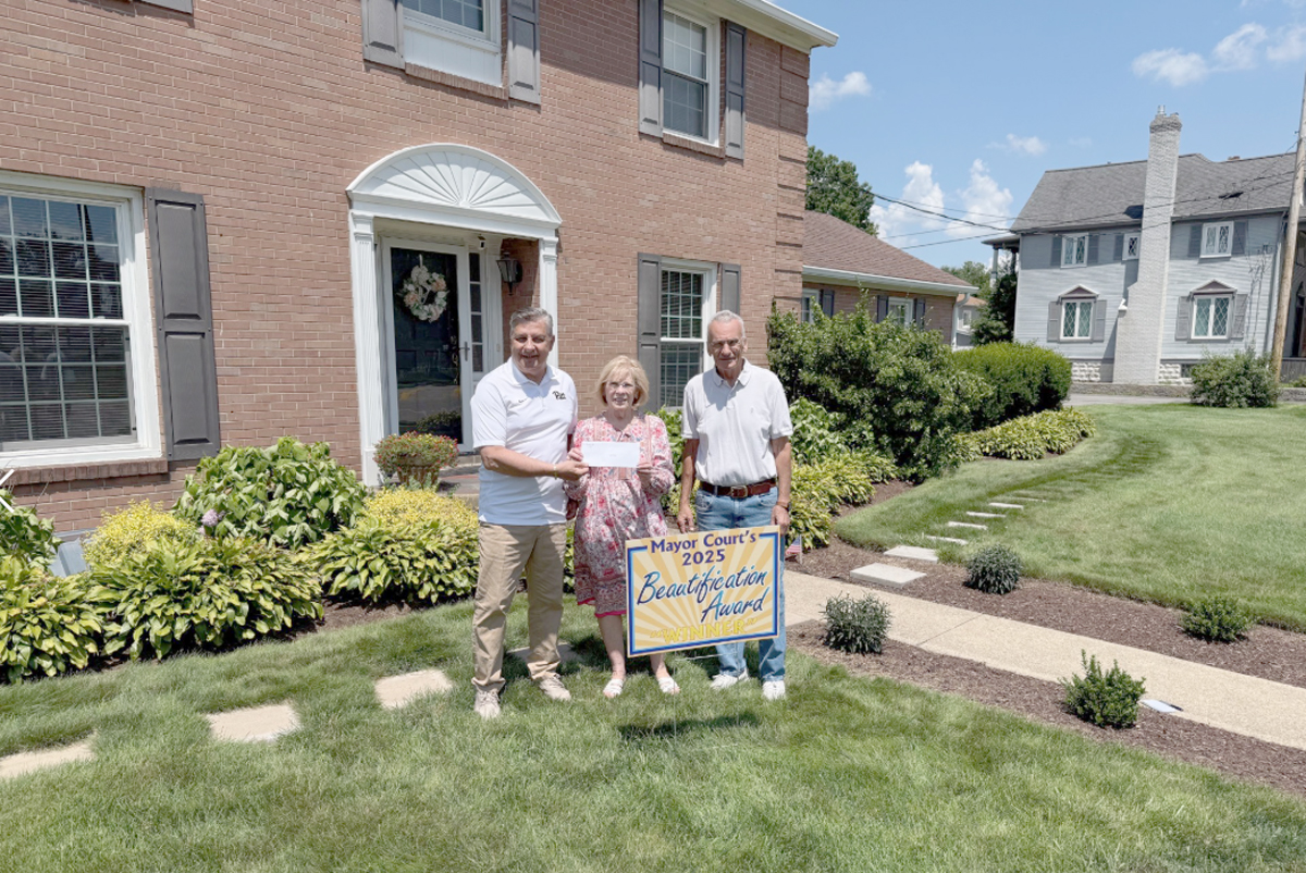 Mayor Court presented the fourth 2025 Beautification Award to Dawn and Anthony Santagata of 1 Pittsburgh Circle, honoring their commitment to maintaining an exceptional landscape.