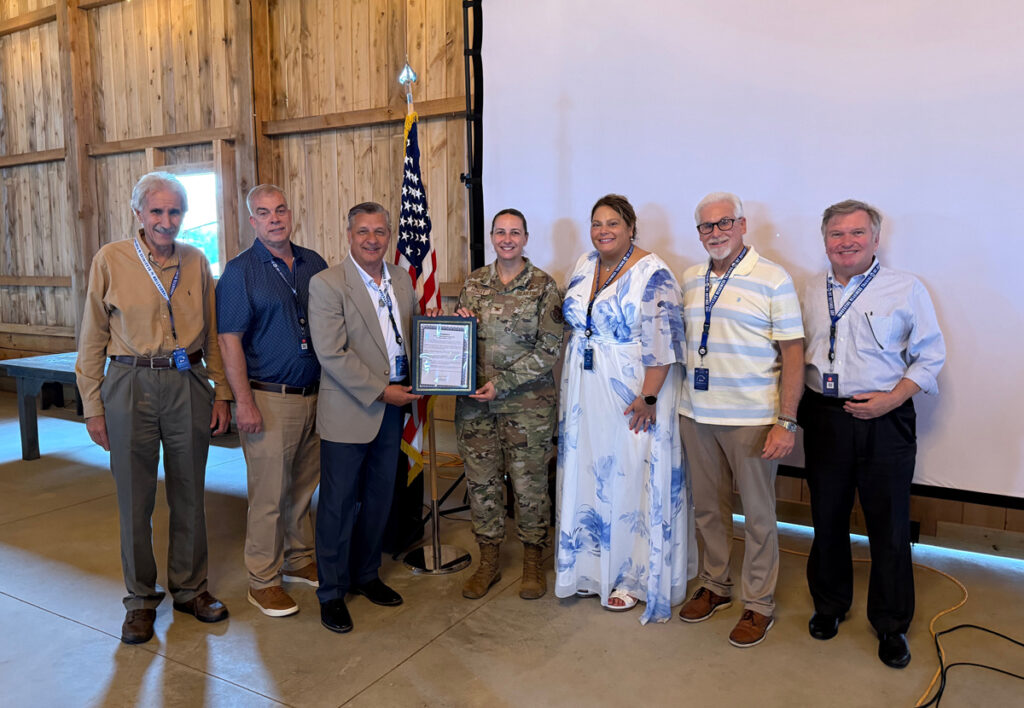 PICTURED (left to right): Chris Sainato, Lawrence County Commissioner, Kevin Swogger, Ellwood City Borough Manager, Anthony J. Court, Mayor of Ellwood City who presented proclamation to Col. Nicole Ewing Hurley, Colonel, USAF, NC, Rhiannon Schnell, Borough Secretary of Public Works and Code Enforcement, Brad Ovial, Borough Council President, and Dan Vogler, Lawrence County Commissioner