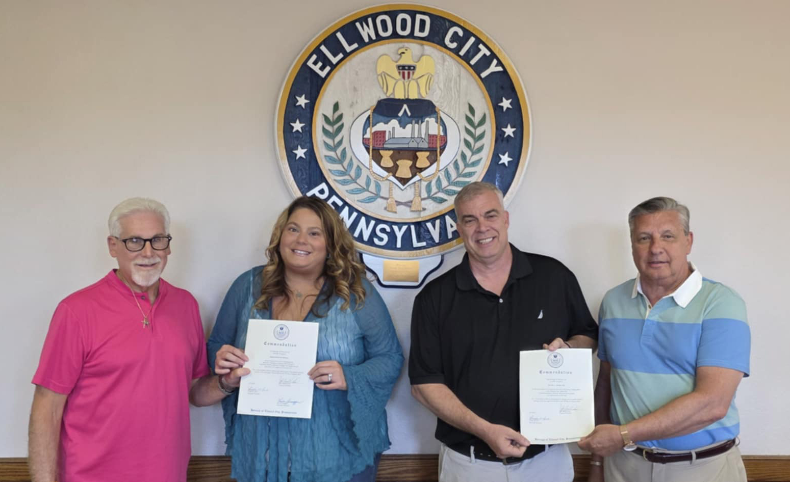 Ellwood City Borough Council President, Brad Ovial, presented commendations to two borough employees for their work on the recent Innovative Readiness Training (IRT) initiative during Council’s recent regular meeting.