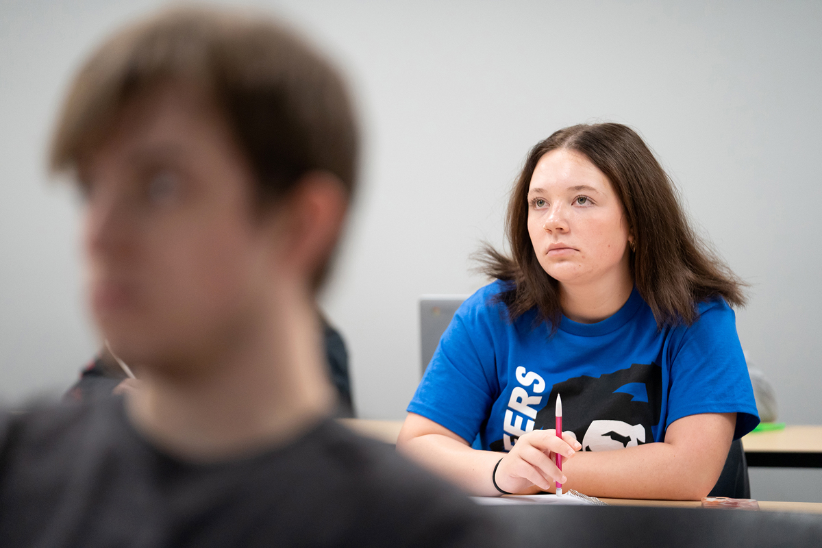 Business administration student Mitchell Covert, of Ellwood City, is shown in a microeconomics class