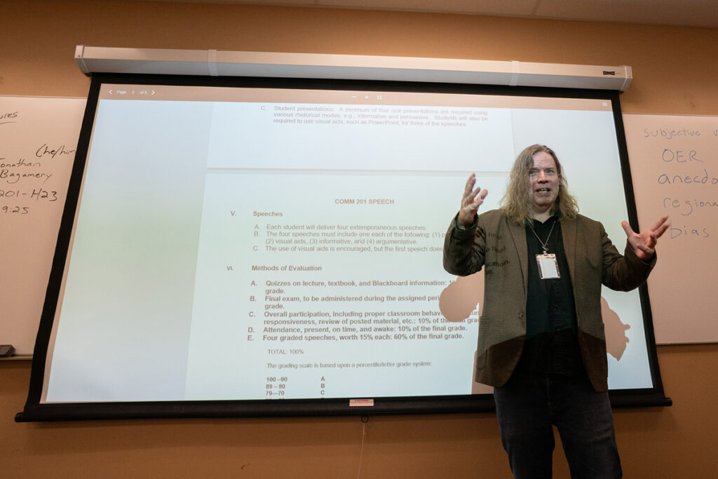 - Jonathan Bagamery, a Butler County Community College faculty member, teaches a speech class Monday, Aug. 25, 2025, on BC3’s main campus