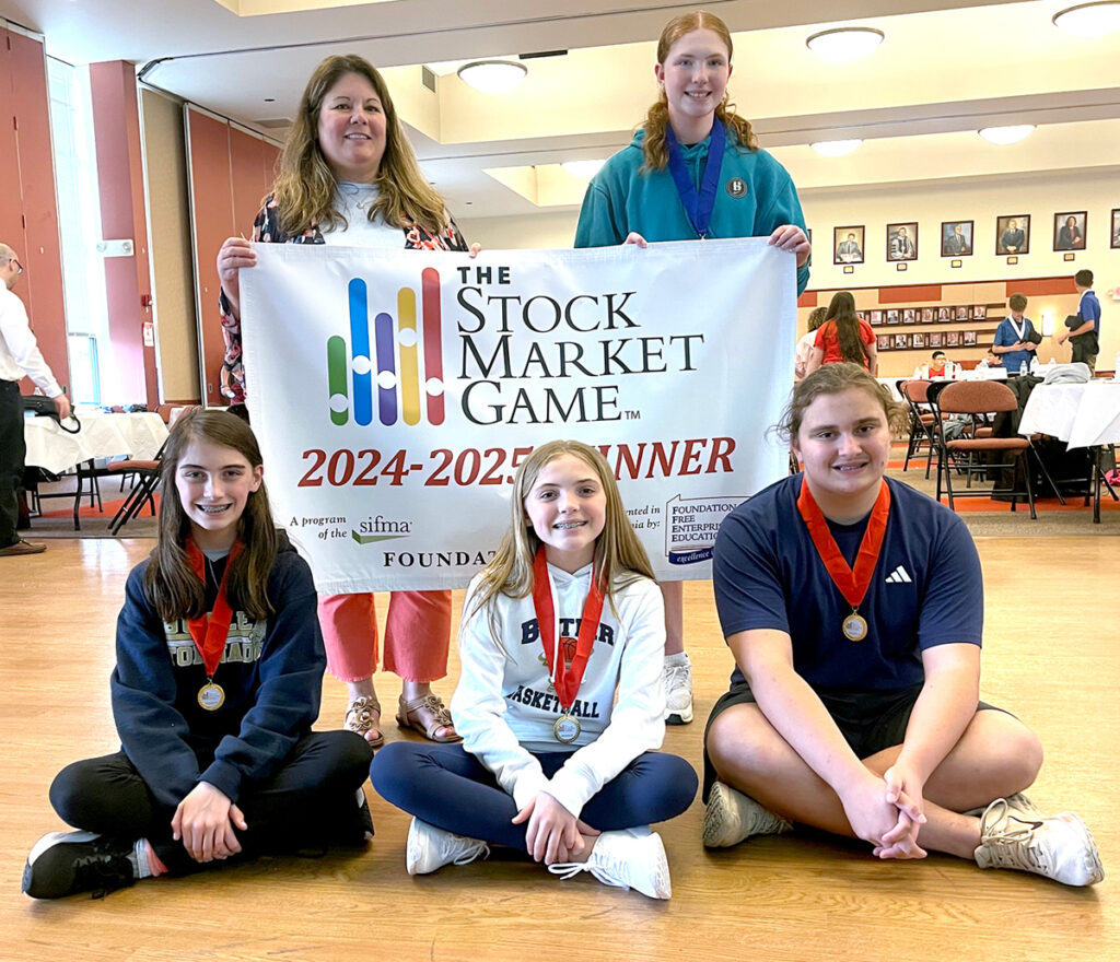 A team from Butler Intermediate placed first in the Western Region and second in Pennsylvania among middle schools in the fall 2024 competition. Phoenix Fancher, Cheza Harbaugh, Brielle Myers, Maxwell Oddo and Hunter Ryan ended the game with an equity of $141,110.29.