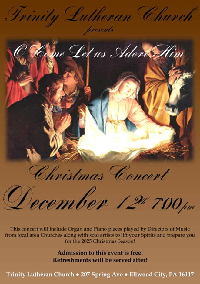 Trinity Lutheran Church will be having a Christmas Concert on Friday, December 12th