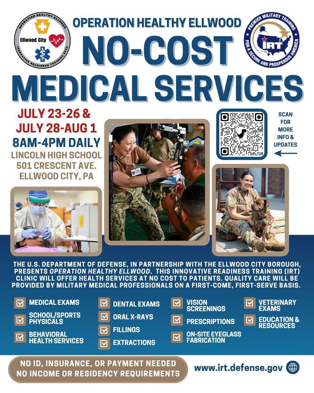 Over the summer this year Ellwood City experienced a remarkable outpouring of care and community spirit through Operation Healthy Ellwood, a 10‑day Department of Defense Innovative Readiness Training (IRT) mission that brought nearly 200 service members to town to provide no‑cost medical, dental, vision, behavioral health, and veterinary services to residents who might otherwise go without care. What began as a training exercise became a heartfelt partnership — volunteers, local businesses, and military personnel formed bonds that blurred the line between helpers and neighbors, touching thousands of lives and delivering more than $1.2 million worth of services in free care and compassion. For many, the mission was more than health care; it was a reminder that community, service, and kindness can make a lasting difference in people’s lives.