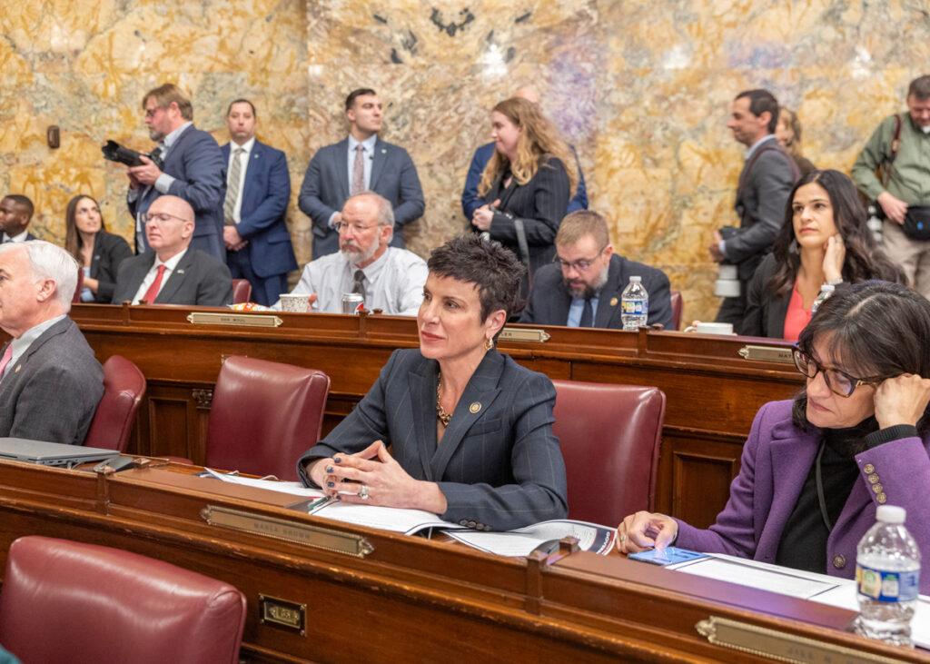 On Feb. 3, 2026, Rep. Marla Brown (R-Allegheny) listens to Gov. Josh Shapiro’s annual budget address.