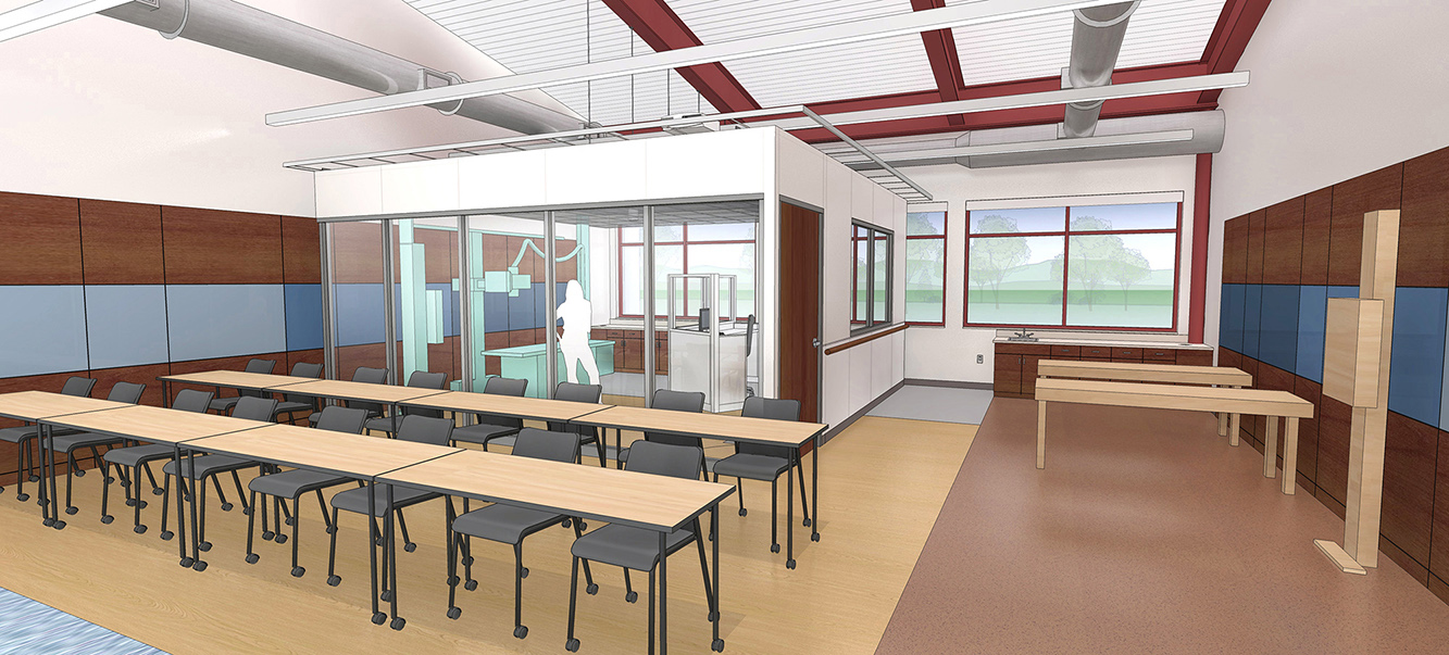 An artist’s rendering depicts a possible design of what will become a 1,200-square-foot Radiologic Technology Education Center and its interior simulated X-ray laboratory