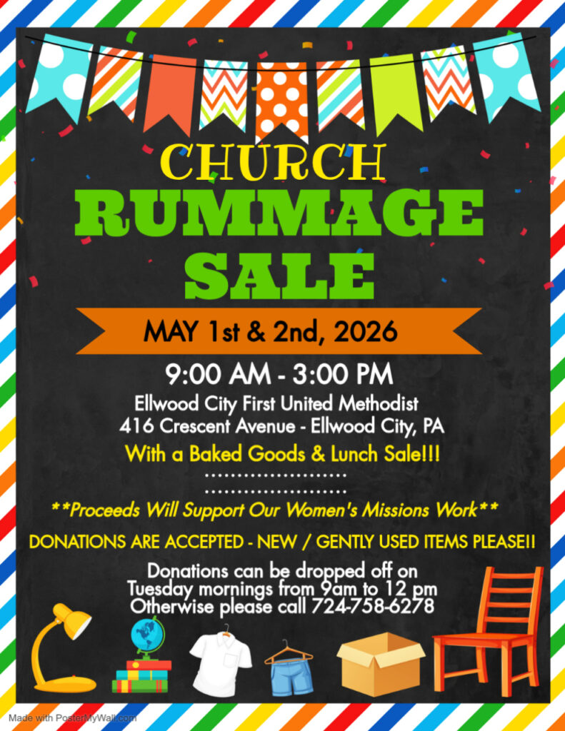 The Ellwood City First United Methodist Church is hosting a two day rummage sale!